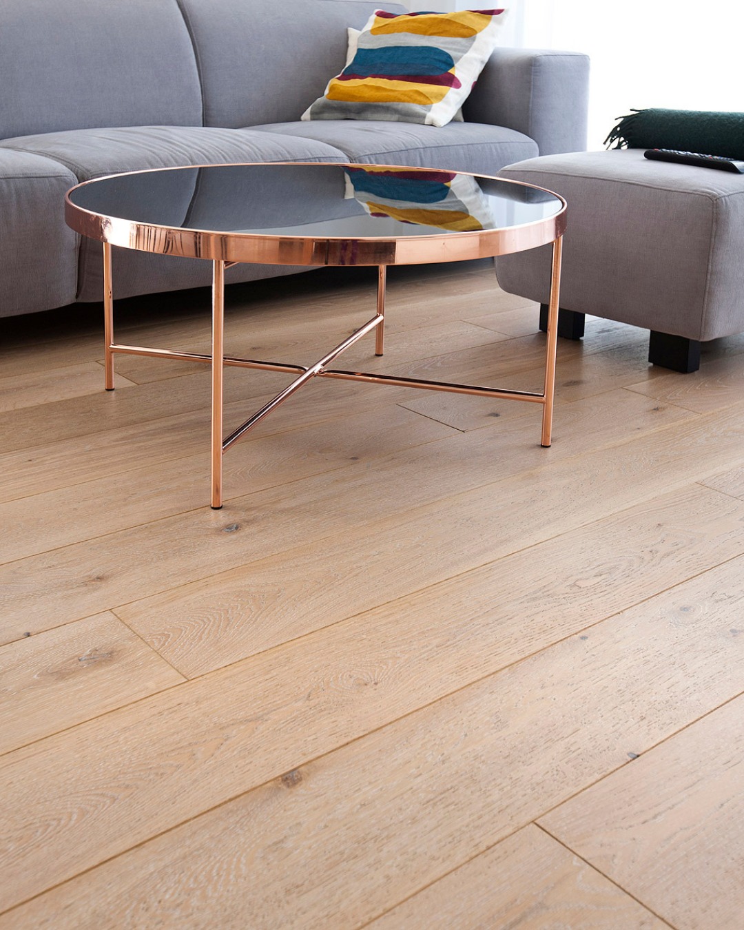 Podłoga z naturalnego drewna dębowego jest trwała, odporna na uszkodzenia, ciepła w dotyku i nadaje wnętrzu elegancji oraz ponadczasowego charakteru. Każda deska ma unikalne usłojenie, co dodaje wnętrzu indywidualnego stylu.