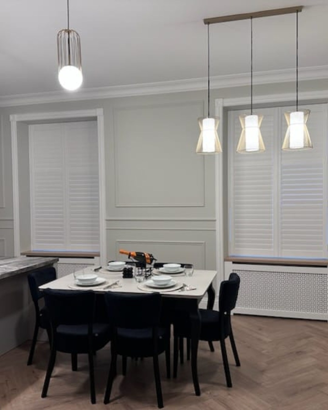 W przestrzeni jadalni shuttersy pełnią nie tylko funkcję praktyczną, ale również estetyczną. Pozwalają swobodnie regulować ilość światła dziennego oraz poziom prywatności, jednocześnie stanowiąc subtelne tło dla codziennych spotkań i rodzinnych chwil.