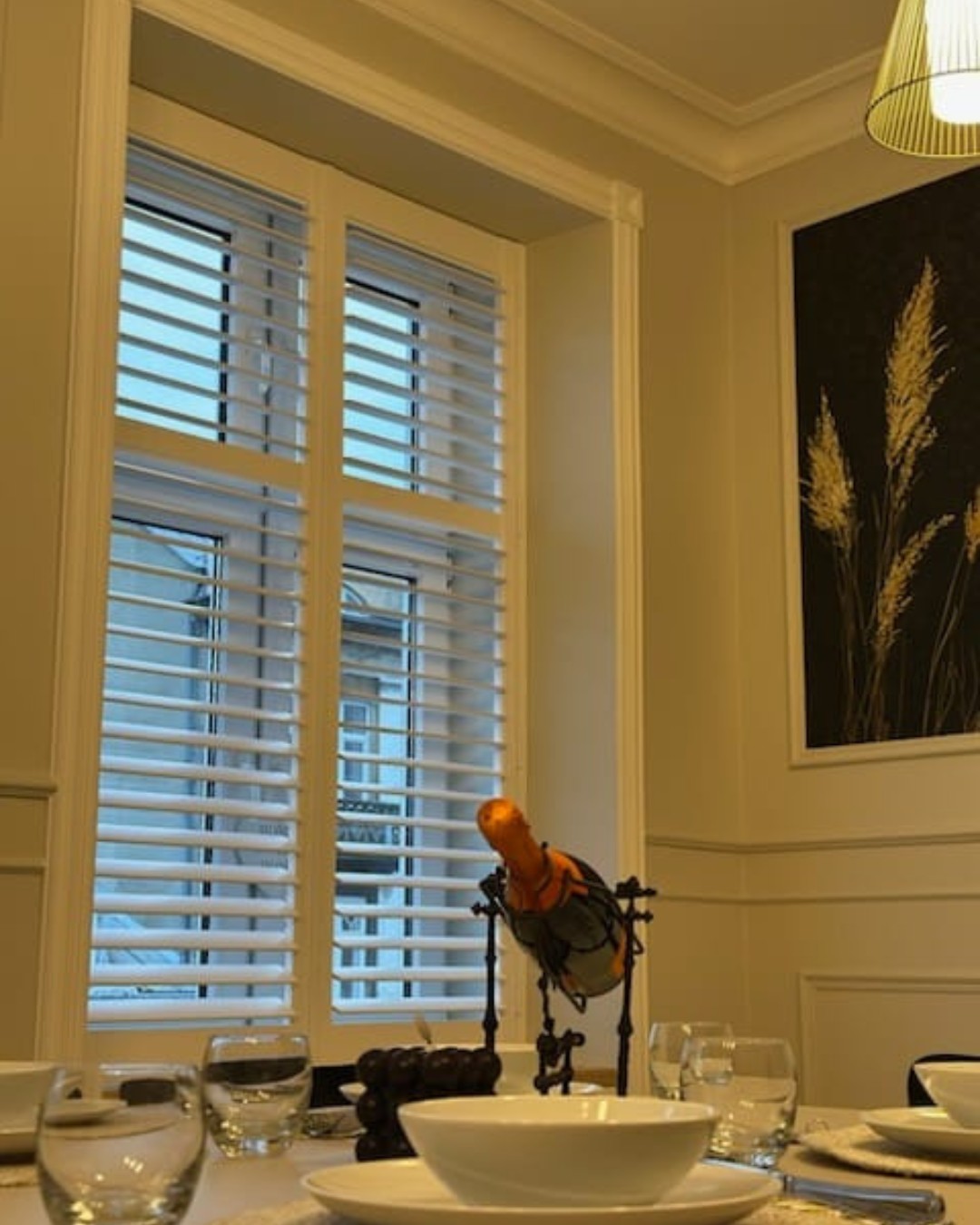 W tej realizacji zastosowano shuttersy okienne w klasycznym, białym wykończeniu, które idealnie wpisują się w charakter historycznej kamienicy. Ich precyzyjne dopasowanie do okien podkreśla architekturę wnętrza i wprowadza wizualny porządek oraz harmonię.