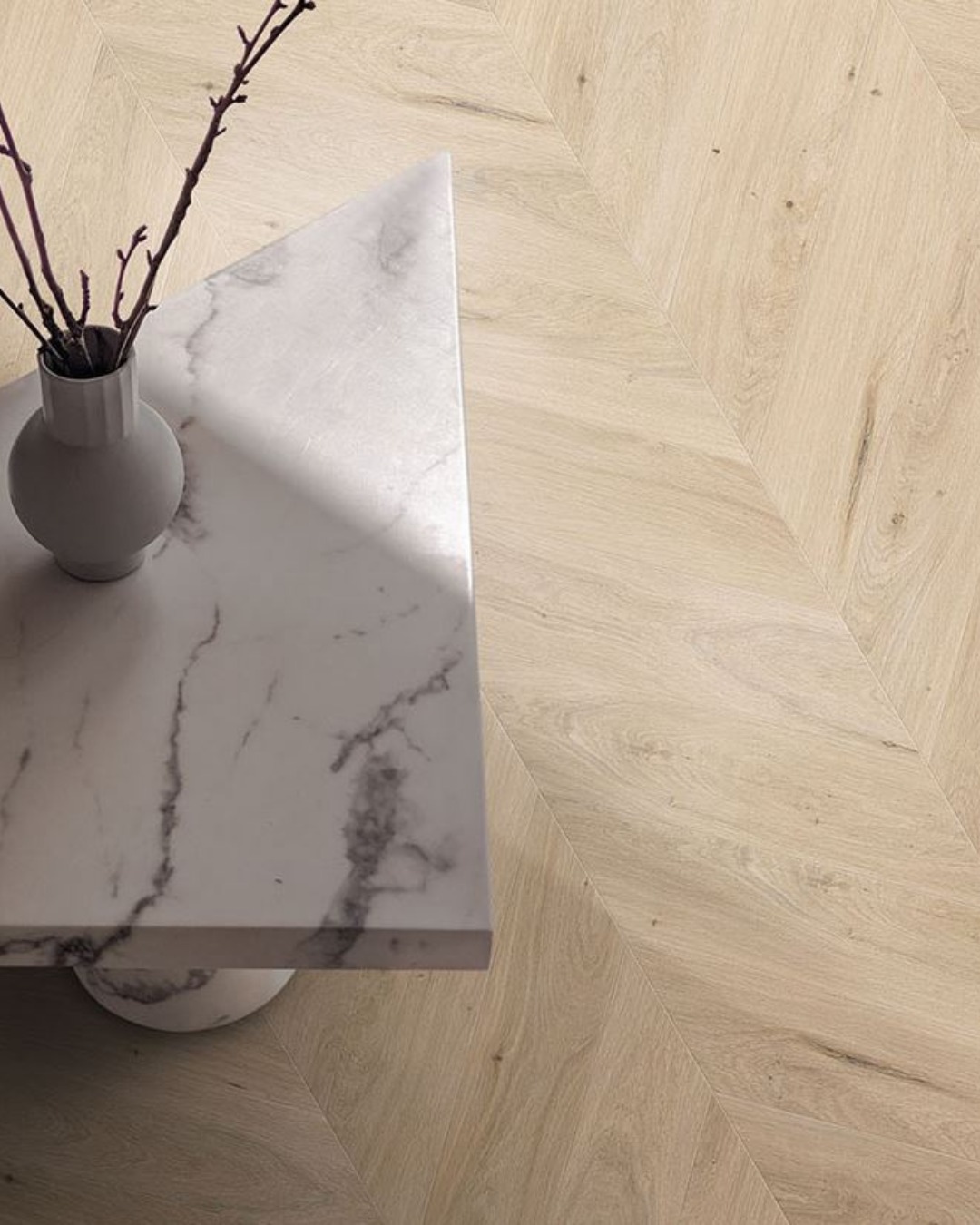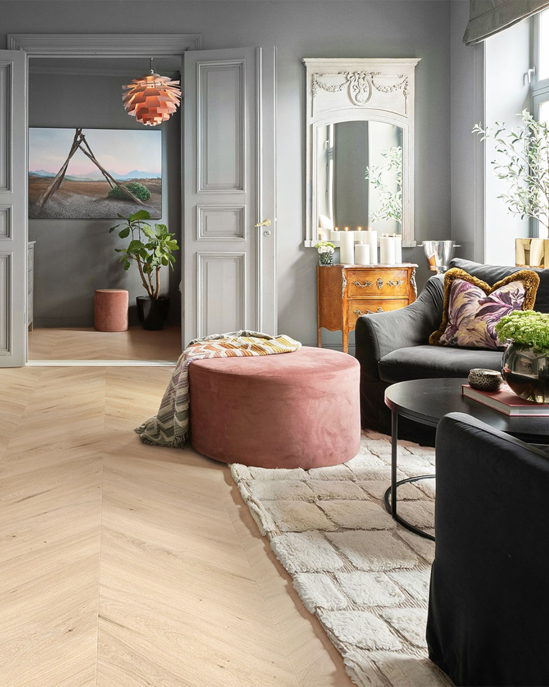W kolekcji Solen dostępne są trzy formy paneli: deska winylowa prosta, jodełka klasyczna oraz jodełka francuska klejona. Dzięki temu każdy może dopasować układ podłogi do własnego projektu i wielkości pomieszczenia. Takie rozwiązanie pozwala łączyć funkcjonalność z designerskim efektem wizualnym.